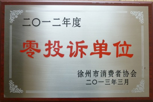 • 徐州市消費(fèi)者協(xié)會(huì)頒發(fā)零投訴單位